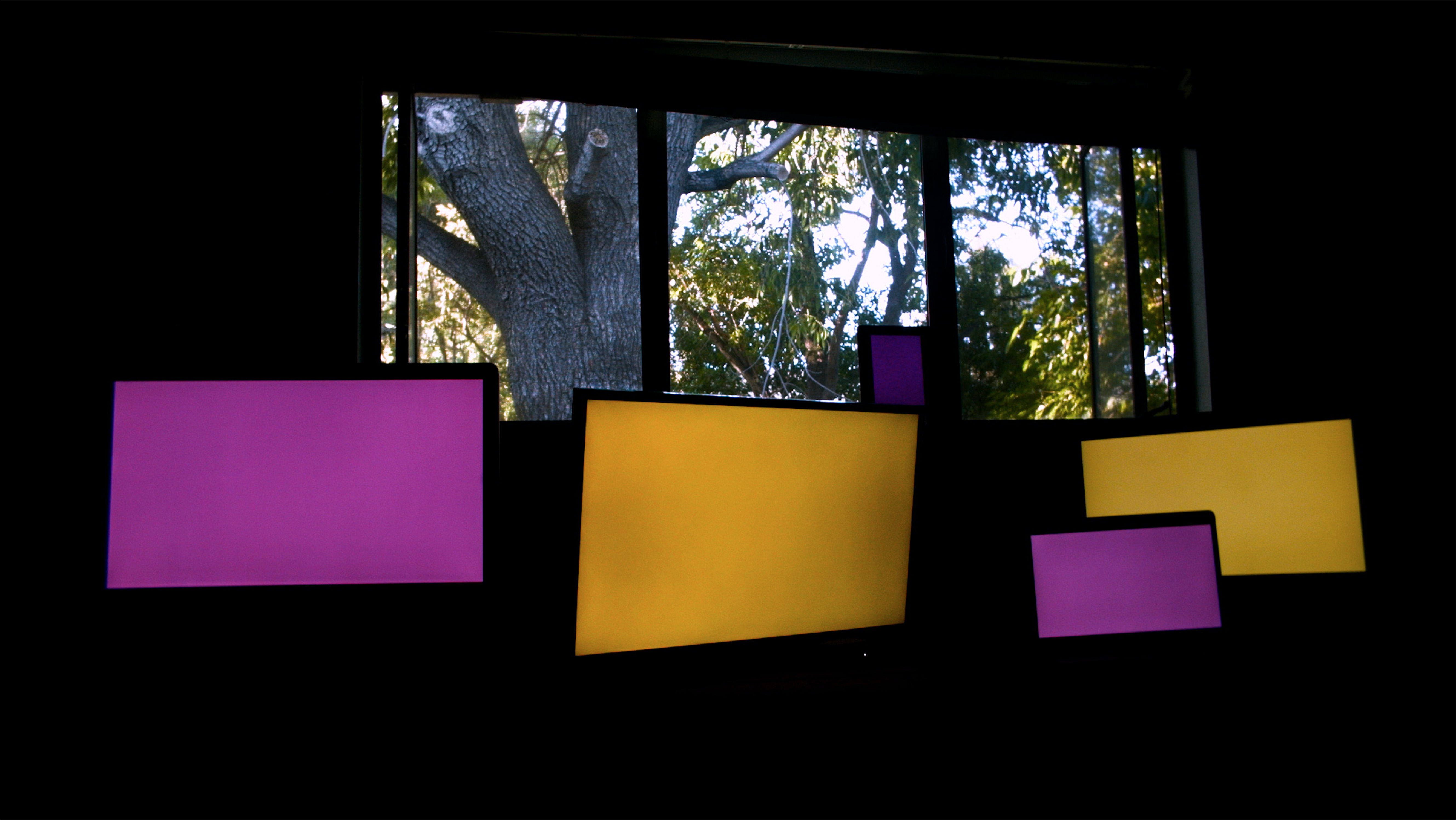 But the past can never be repeated. Our childhood homes will always remain an abstraction that is impossible to reproduce. It’s the same with a photograph: you can reproduce its image, but not the act of taking it. What lasts, what remains, is an abstract feeling: colours and forms. Edgar Jorge Baralt may go in search of that abstract feeling when he uses (digital) screens featuring contrasting colours.