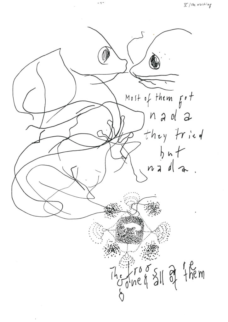 Artist Dorothea Schulz calls her sketches on paper “audio drawings” since they develop under the influence of heard language.