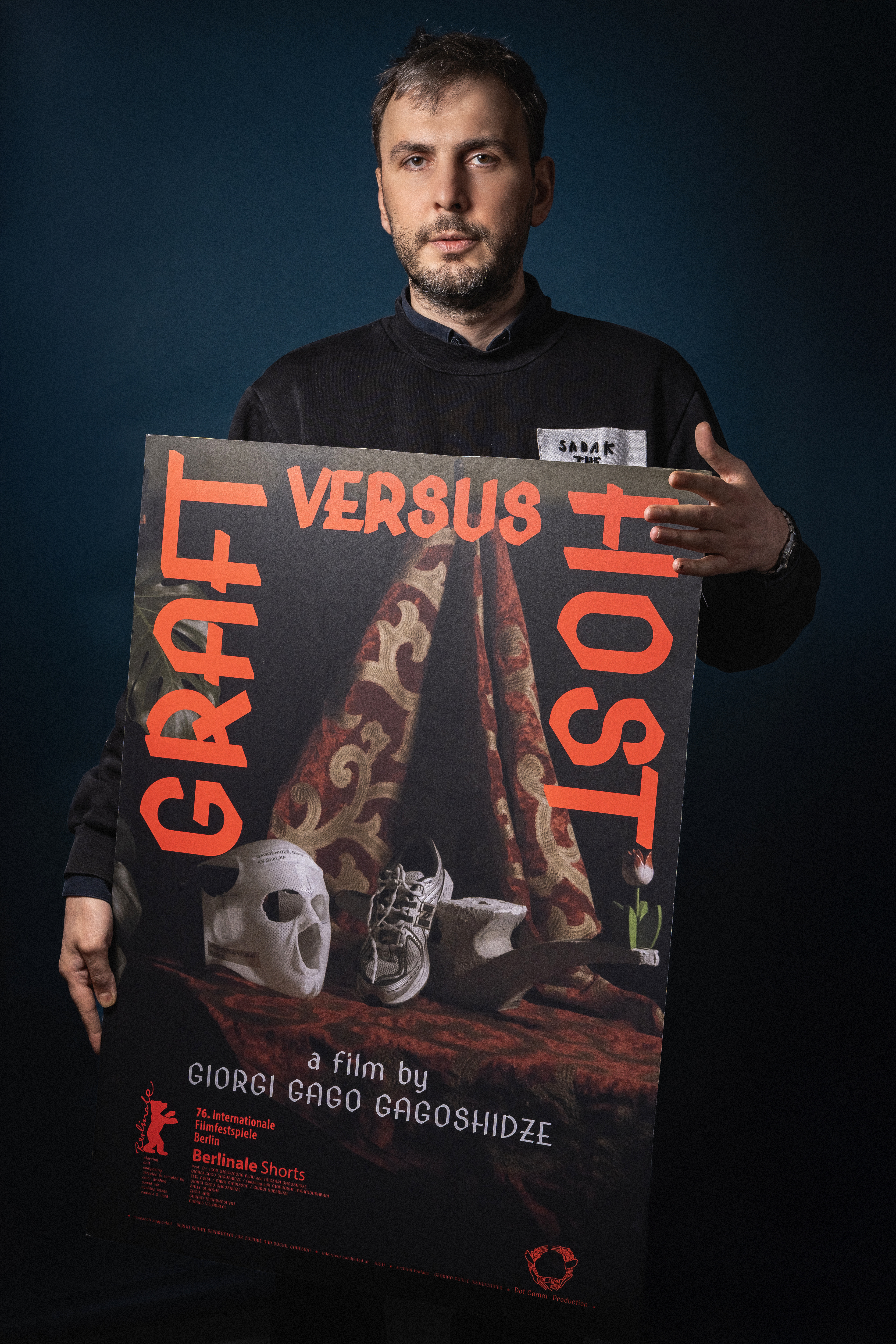 Born in Kutaisi, Georgia in 1983, the artist and filmmaker Giorgi Gago Gagoshidze is now based in Berlin. He studied at the State Academy of Fine Arts in Tbilisi and then took a degree in new media at the Berlin University of the Arts. His works focus on the moving image, the political background of its production and distribution, and its socio-political significance. They have been presented in numerous international contexts including at the Taipei Biennial in 2023, the National Art Center in Tokyo and the SculptureCenter in New York.