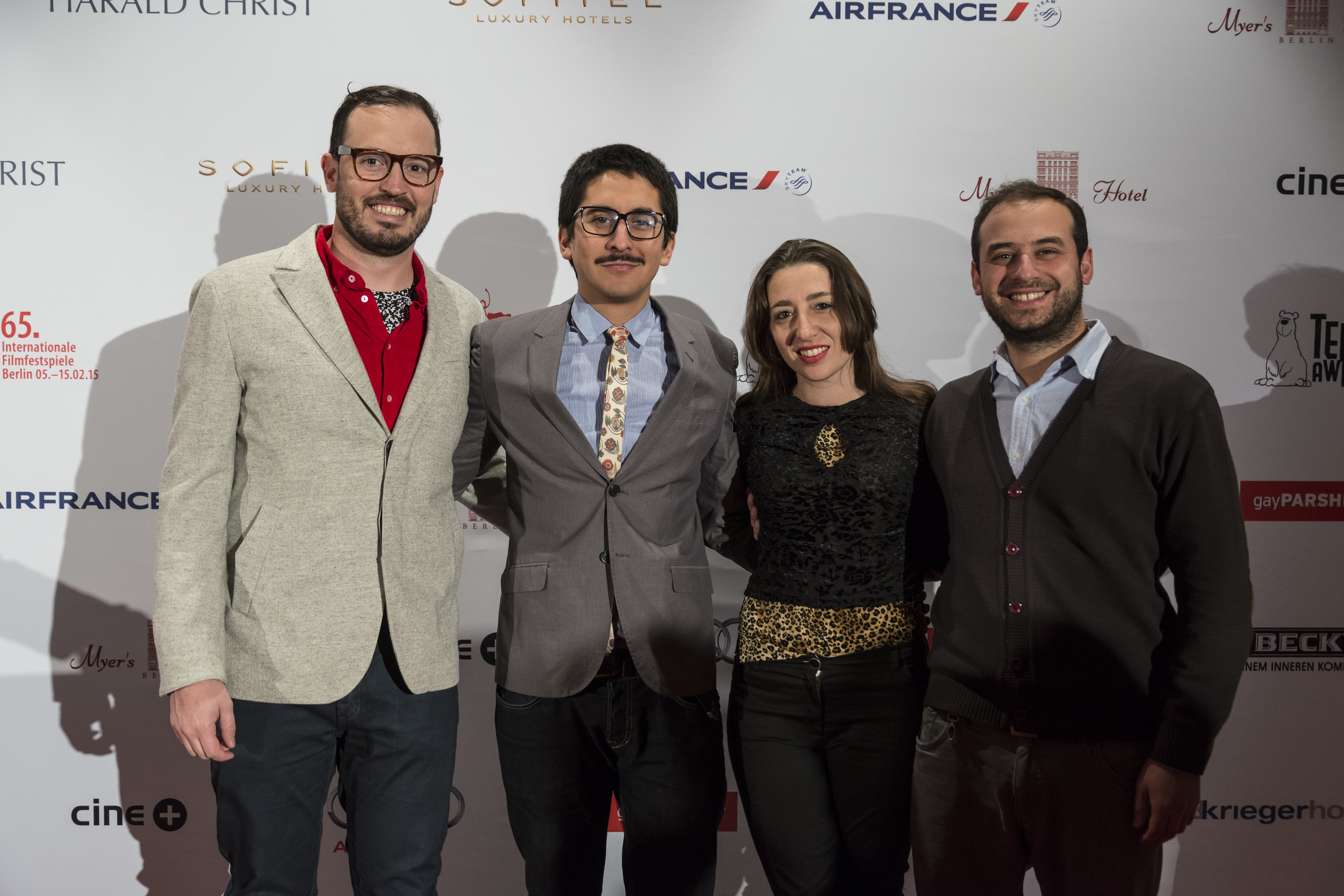 Zúñiga Hidalgo Omar (Regie, 2v.l.) gewinnt fuer seinen Kurzfilm „San Cristóbal“ den Teddy-Award bei der Preisverleihung in der Komischen Oper Berlin