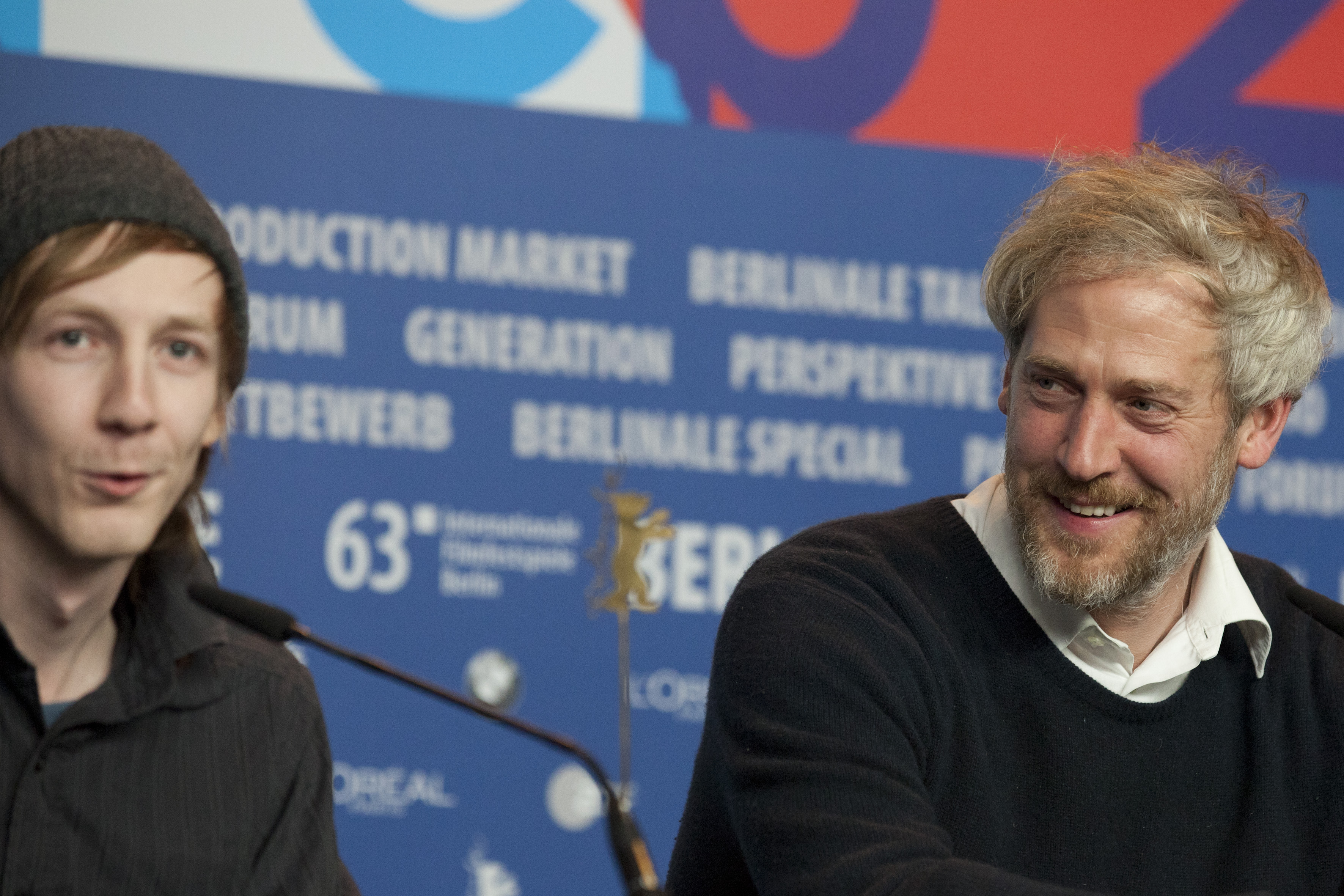 Pressekonferenz im Anschluss an die Verleihung der Preise der Internationalen Kurzfilmjury, Hauptdarsteller Jakob Bieber und Regisseur Stefan Kriekhaus (Die Ruhe bleibt), Gewinner des Silbernen Baeren