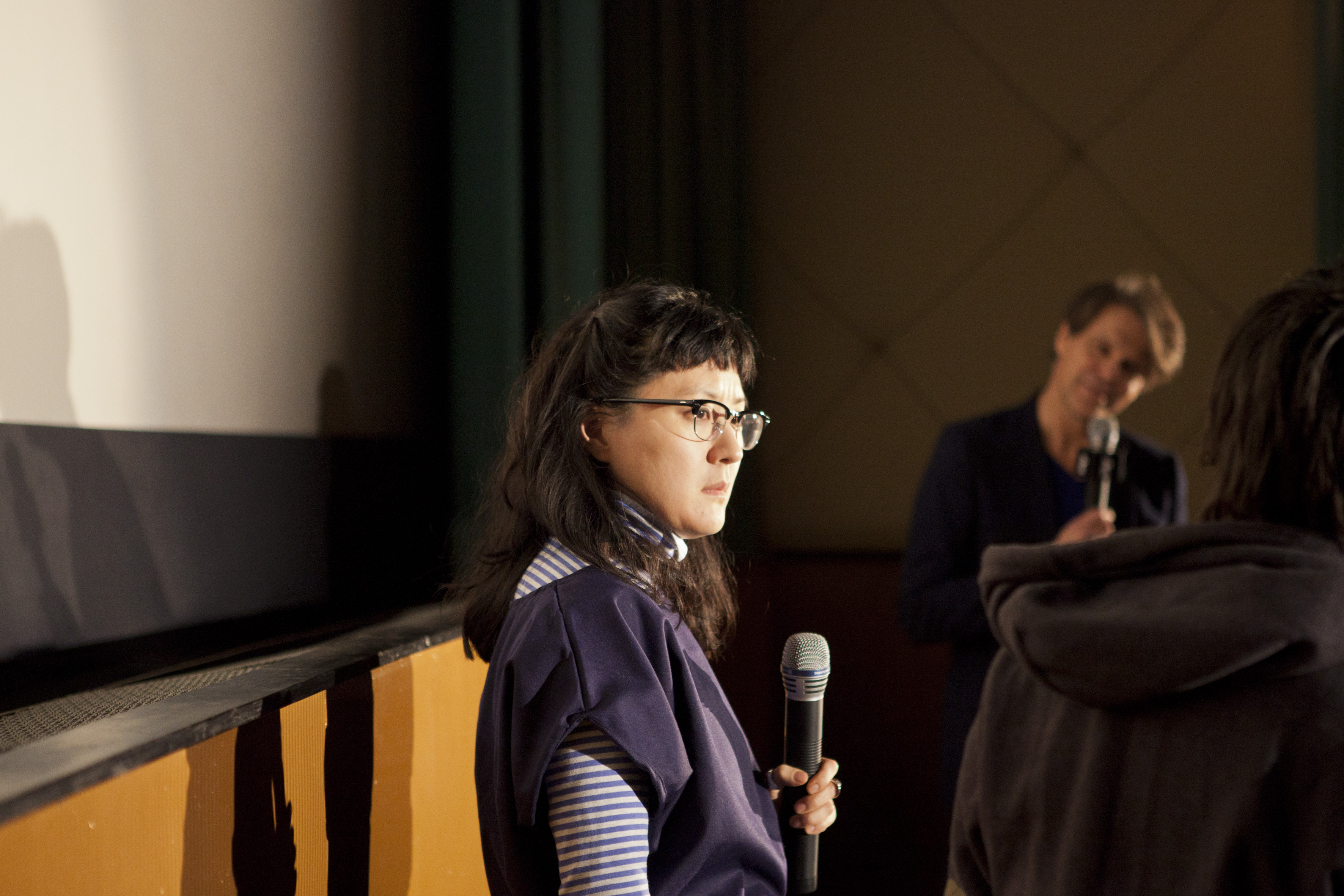 Berlinale Goes Kiez – Berlinale Shorts im NEUES OFF in Berlin Neukoelln, Kim Jeuno Je (Whaled women), Moderator Elwardt Matthias, Einhorn Ewa (Whaled Women) im Gespaech